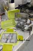 ظرف غذا دو طبقه استیل طرح حیوانات همراه قاشق