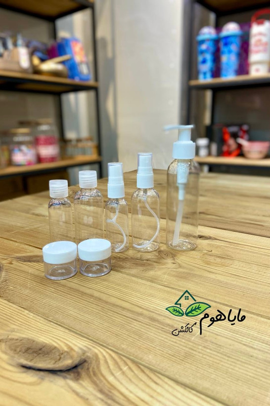 پک 9 تیکه شامل : 1 عدد ظرف پمپی: مناسب شامپو،شوینده و .. 2 عدد ظرف اسپری:مناسب میسلارواتر، تونر و .. 2 عدد ظرف فشاری: مناسب شامپوبدن، مرطوب کننده و … 2 عدد کاسه شیشه ای : مناسب کرم،مرطوب کننده، آبرسان و .. 1 عدد قیف : برای ریختن شوینده و .. درون ظرف ها 1 کاردک و کیف شفاف که بطری ها درون کیف قرار میگیرند.