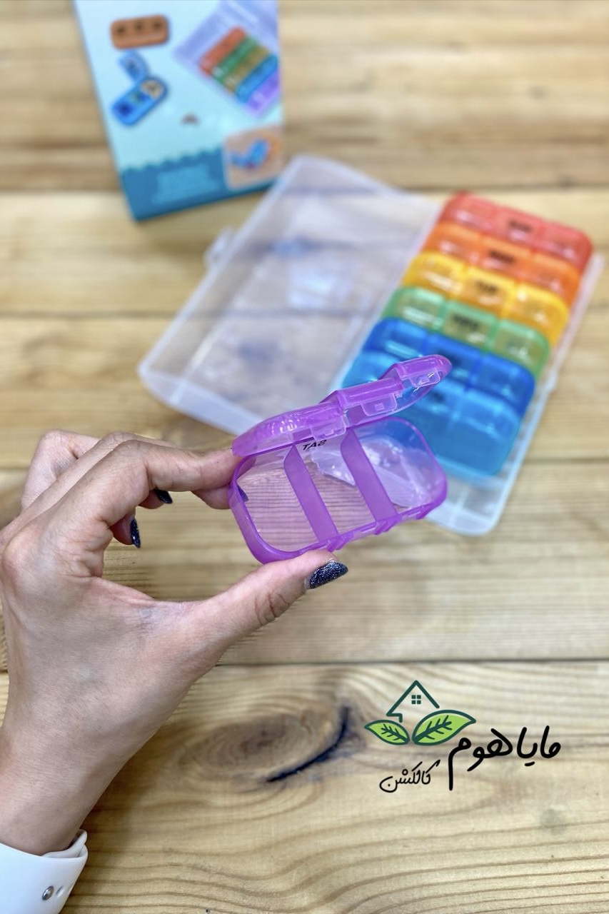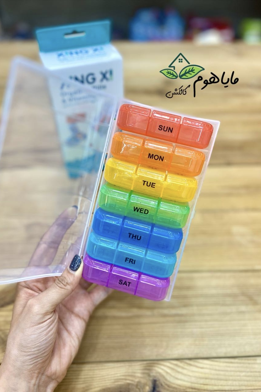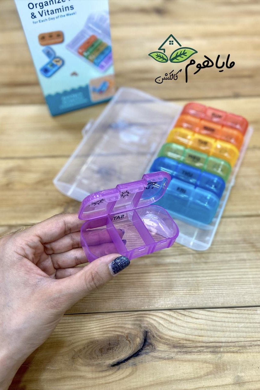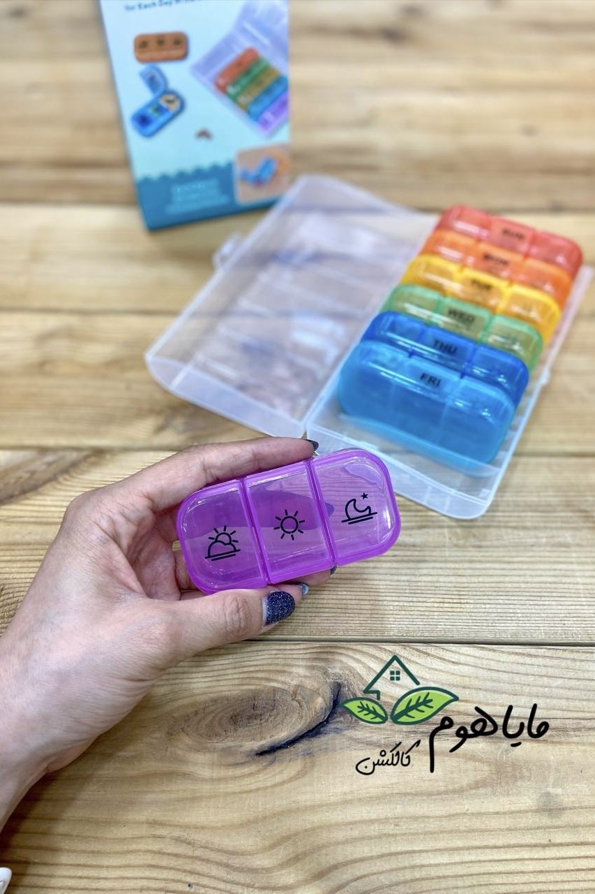 دستهبندی: وسایل کاربردی و فانتزیبرچسبها : جاقرص، ظرف نظم دهنده، جا قرصی هفتگی، جا قرصی روزانهویژگیها: در هر بسته ۷ تا باکس قرص روزانه دارد و هر باکس دارای سه قسمت (صبح، عصر، شب) مجزا میباشد.